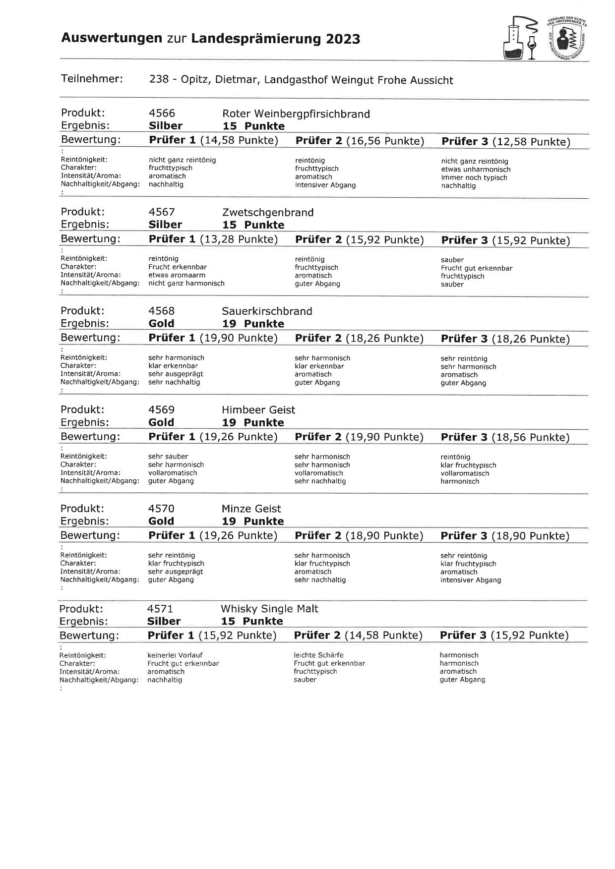 Landesprämierung von Edelbränden und Likören3x Gold & 3x Silber